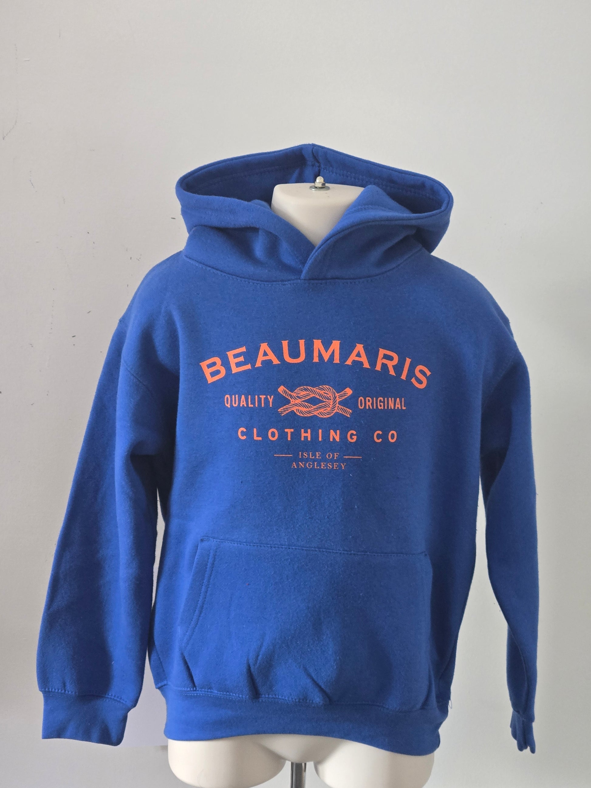Beaumaris Clothing Company spellout and knot logo printed on the front in orange